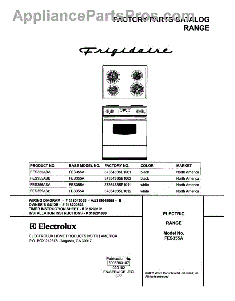 Parts for Frigidaire FES355ASB: 01 - Cover Parts