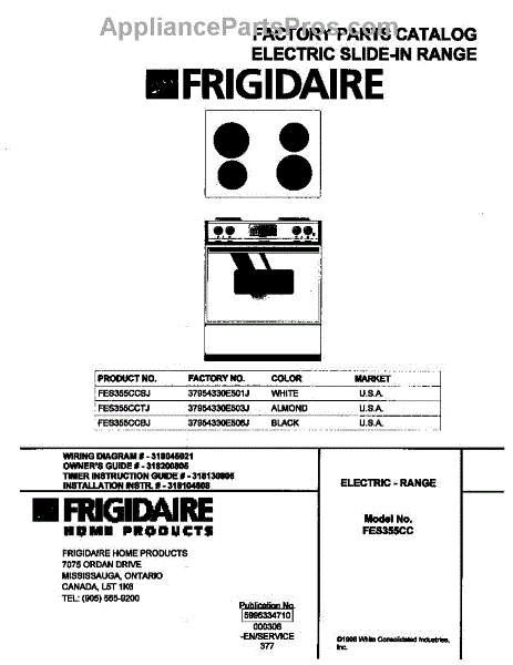 Parts for Frigidaire FES355CCSJ: 01 - Cover Parts