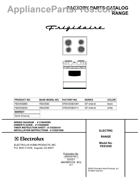 Parts for Frigidaire FES355DBA: 01 - Cover Parts