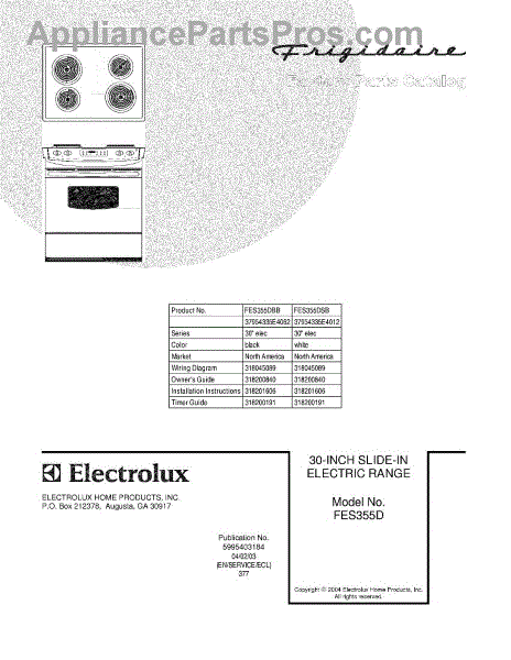 Parts for Frigidaire FES355DSB: 01 - Cover Parts