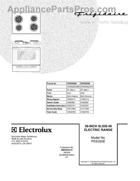 Parts for Frigidaire FES355EBE: 01 - Cover Parts