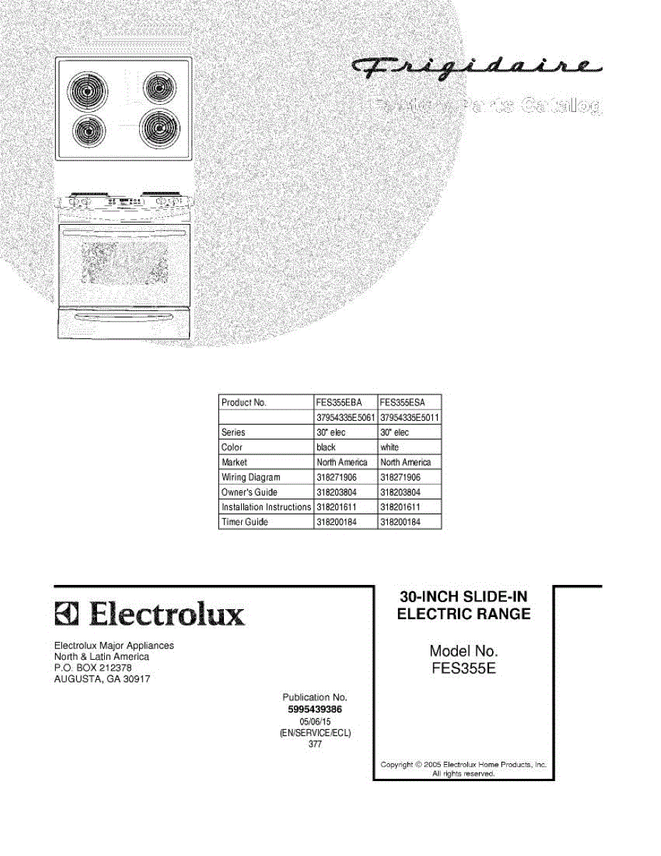 Parts for Frigidaire FES355ESA: 01 - Cover Parts