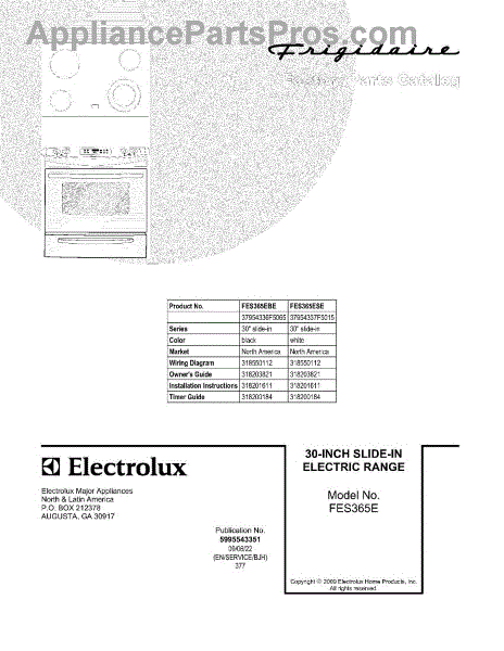 Parts for Frigidaire FES365EBE: 01 - Cover Parts