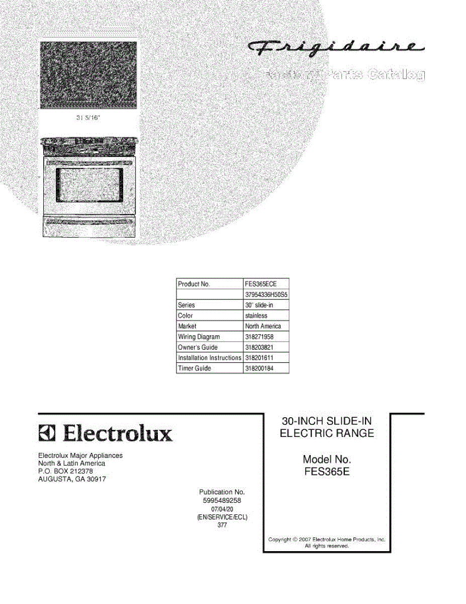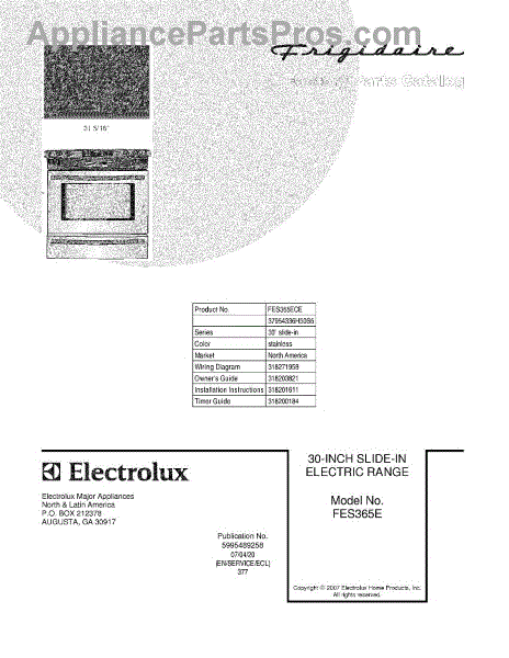 Parts for Frigidaire FES365ECE: 01 - Cover Parts