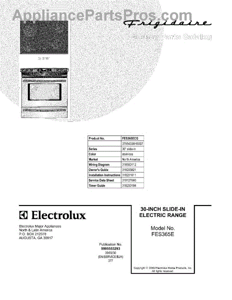 Parts for Frigidaire FES365ECG: 01 - Cover Parts