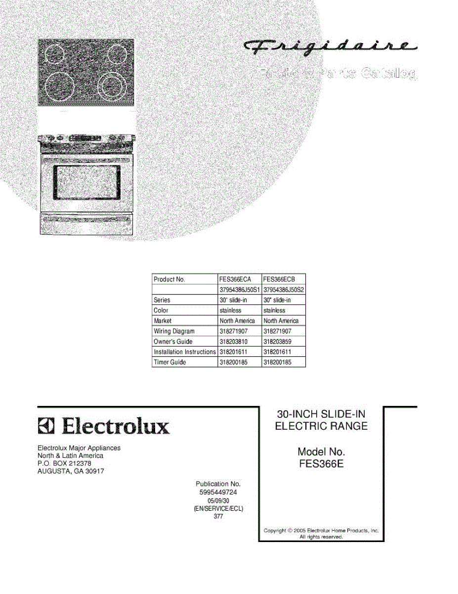 Parts for Frigidaire FES366ECA: 01 - Cover Parts