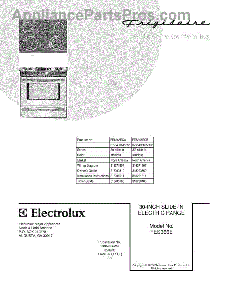 Parts for Frigidaire FES366ECB: 01 - Cover Parts