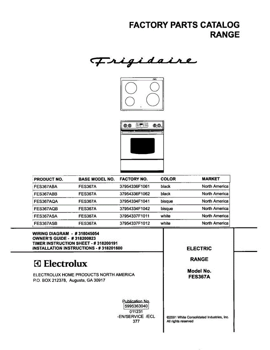 Parts for Frigidaire FES367ABB: 01 - Cover Parts