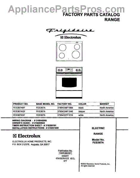 Parts for Frigidaire FES367ABF: 01 - Cover Parts