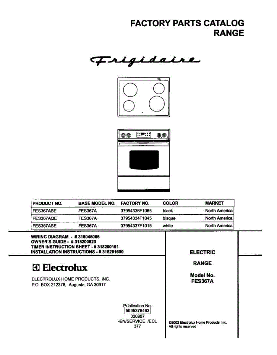 Parts for Frigidaire FES367ASE: 01 - Cover Parts