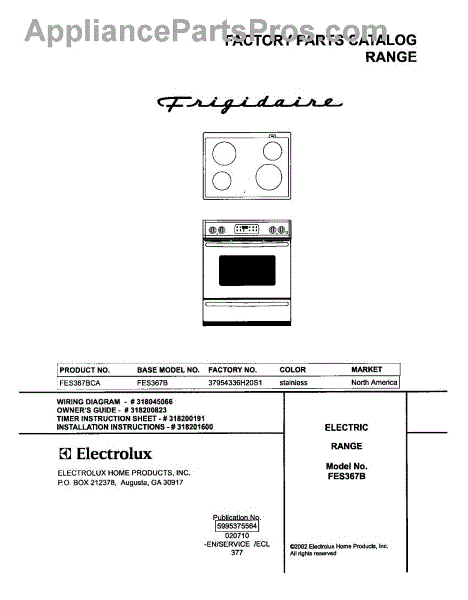 Parts for Frigidaire FES367BCA: 01 - Cover Parts