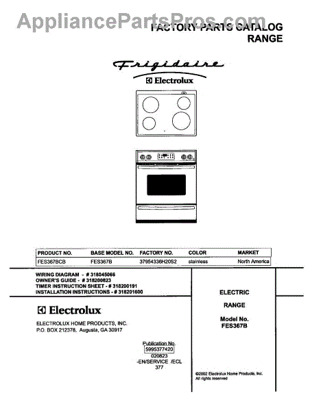 Parts for Frigidaire FES367BCB: 01 - Cover Parts