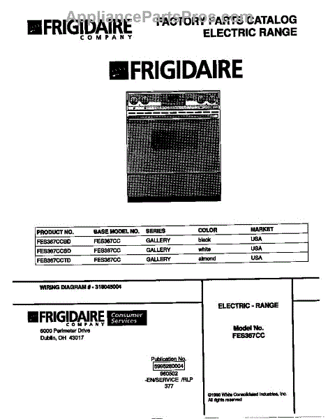 Parts for Frigidaire FES367CCTD: 01 - Cover Parts