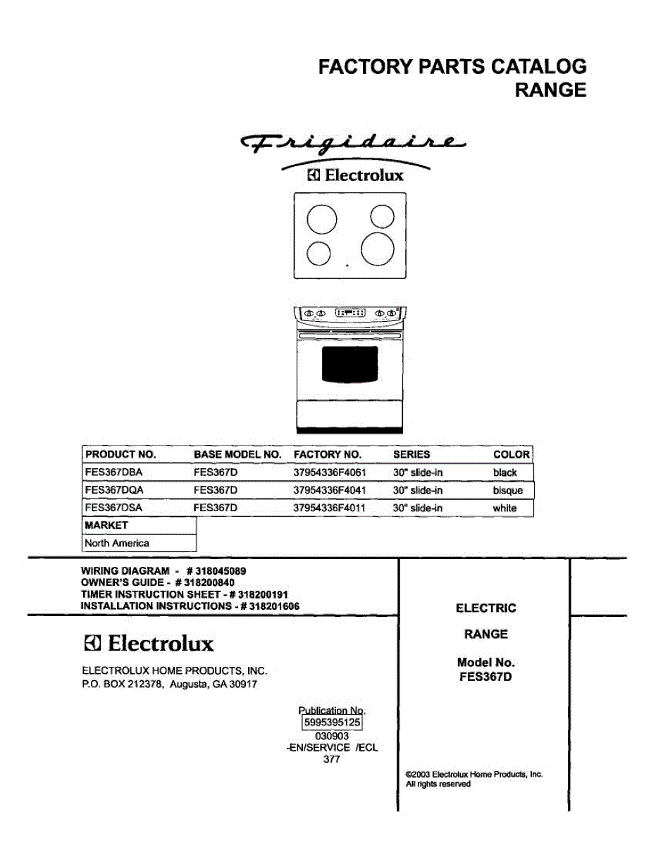 Parts for Frigidaire FES367DBA: 01 - Cover Parts