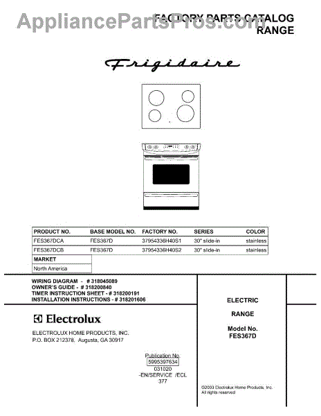 Parts for Frigidaire FES367DCA: 01 - Cover Parts