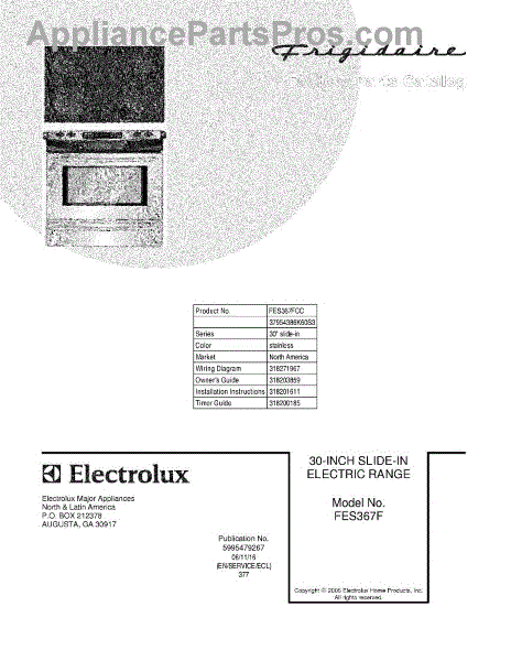 Parts for Frigidaire FES367FCC: 01 - Cover Parts