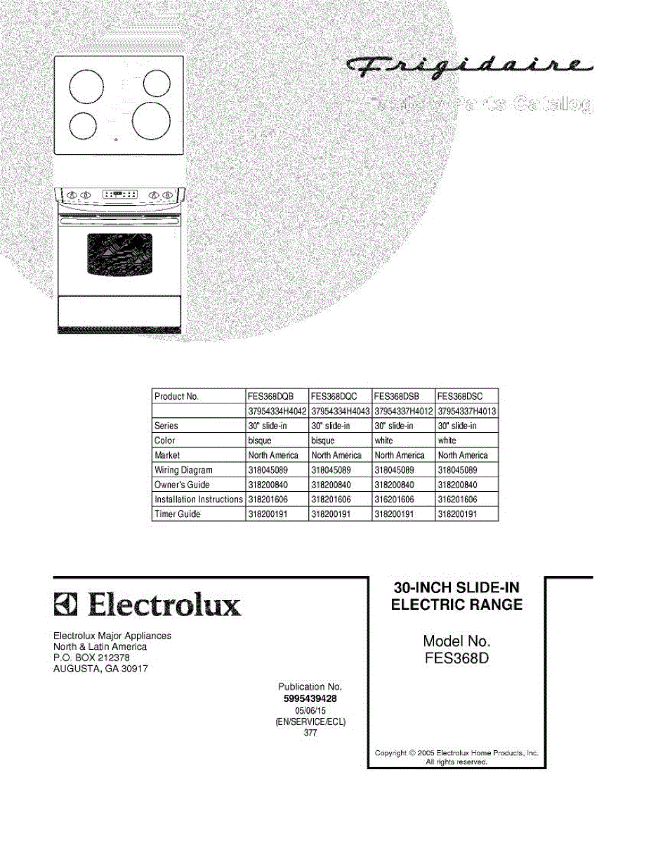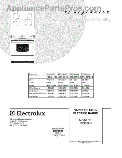 Parts for Frigidaire FES368DQB: 01 - Cover Parts
