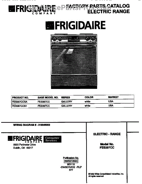 Parts for Frigidaire FES387CCS1: 01 - Cover Parts