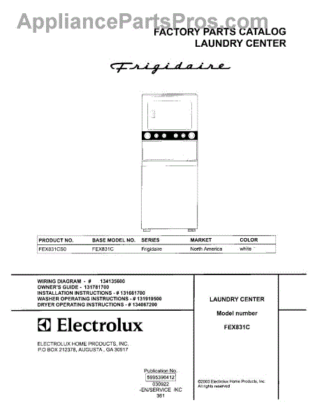 Frigidaire Washer Dryer Combo Parts
