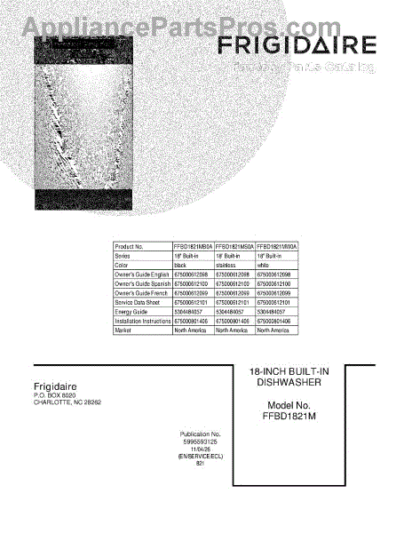 Parts for Frigidaire FFBD1821MW0A: 01 - Cover Parts