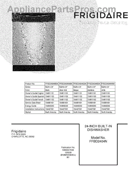 Parts for Frigidaire FFBD2404NW0A: 01 - Cover Parts