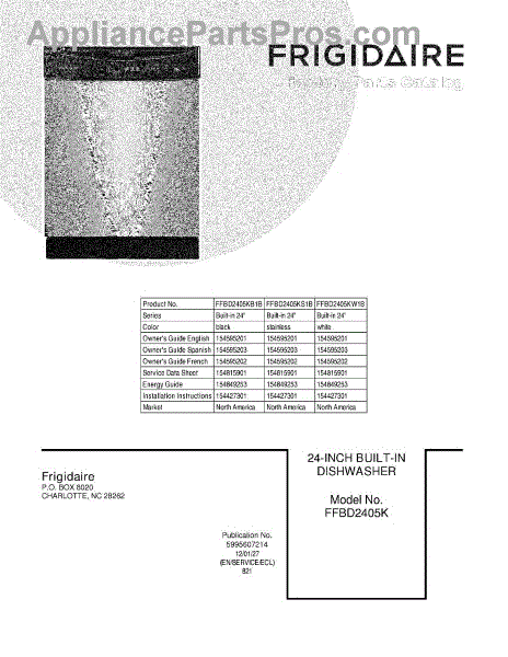 Parts for Frigidaire FFBD2405KB1B: 01 - Cover Parts