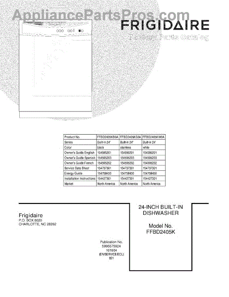 Parts for Frigidaire FFBD2405KS0A: 01 - Cover Parts