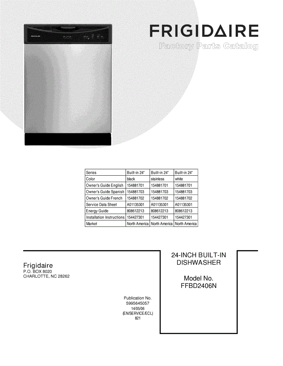 Parts for Frigidaire FFBD2406NB2A: 01 - Cover Parts