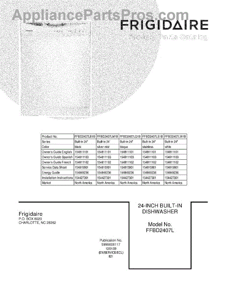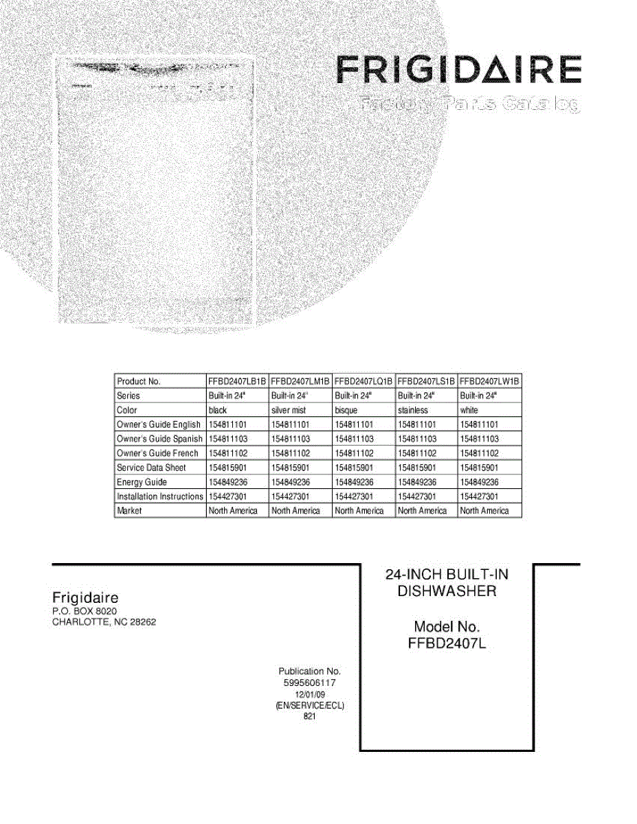 Parts for Frigidaire FFBD2407LM1B: 01 - Cover Parts