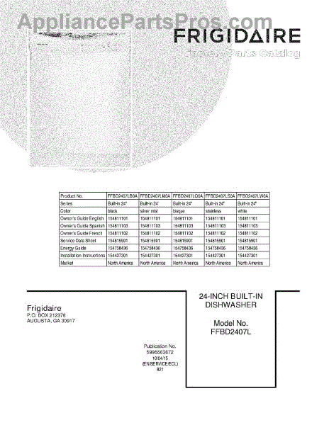 Parts for Frigidaire FFBD2407LQ0A: 01 - Cover Parts
