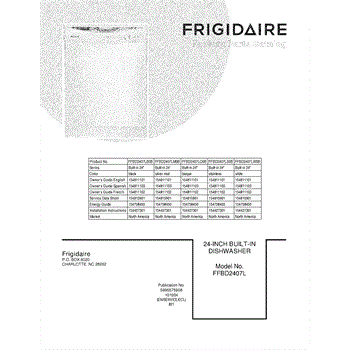Parts for Frigidaire FFBD2407LW0B: 01 - Cover Parts