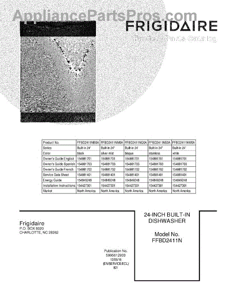 Parts for Frigidaire FFBD2411NB0A: 01 - Cover Parts