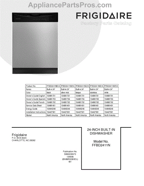 Parts for Frigidaire FFBD2411NS1A: 01 - Cover Parts