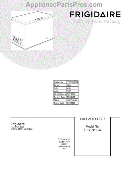 Parts for Frigidaire FFC0723DW21: 01 - Cover Parts