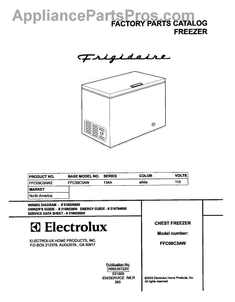 Parts for Frigidaire FFC09C3AW2: 01 - Cover Parts