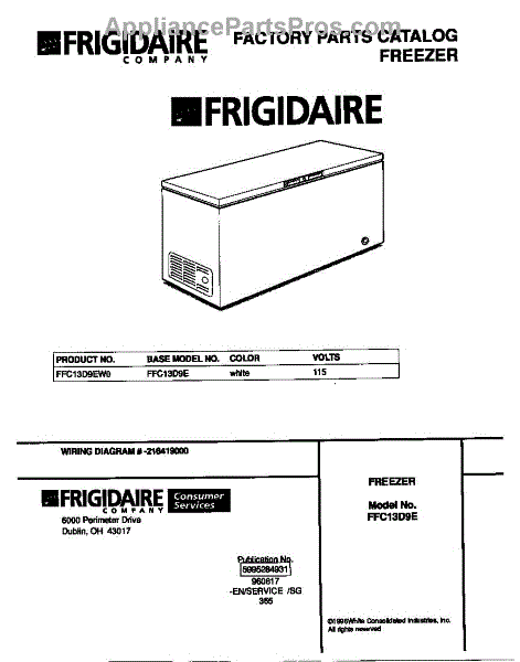 Parts for Frigidaire FFC13D9EW0: 01 - Cover Parts
