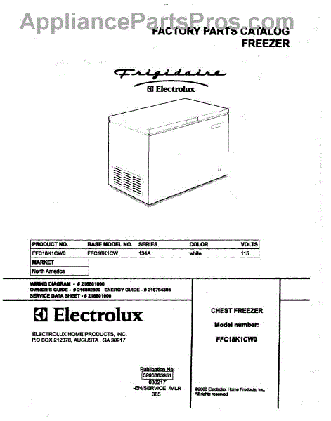Parts for Frigidaire FFC18K1CW0: 01 - Cover Parts