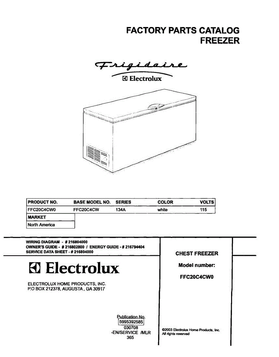 Parts for Frigidaire FFC20C4CW0: 01 - Cover Parts