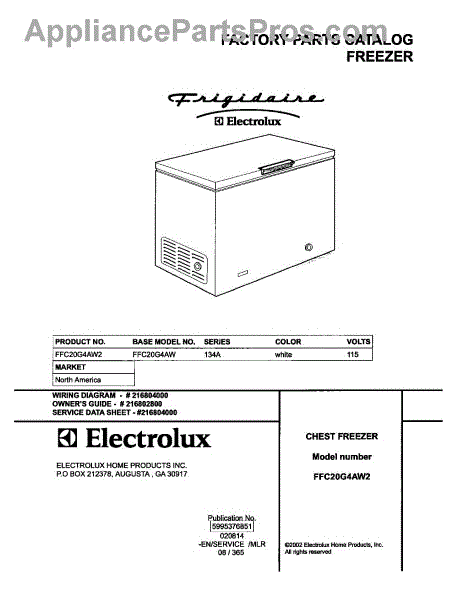 Parts for Frigidaire FFC20G4AW2: 01 - Cover Parts