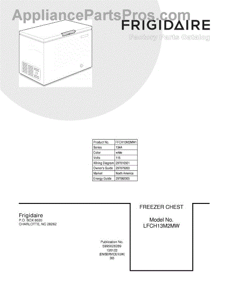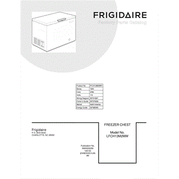 Parts for Frigidaire FFCH13M2MW1: 01 - Cover Parts