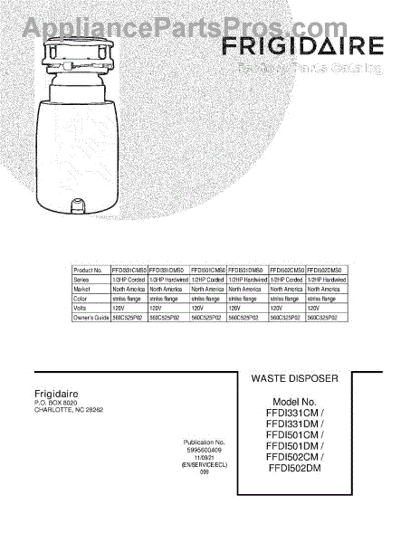 Parts for Frigidaire FFDI501DMS0: 01 - Cover Parts