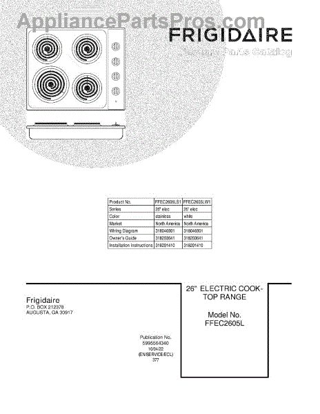 Parts for Frigidaire FFEC2605LS1: 01 - Cover Parts