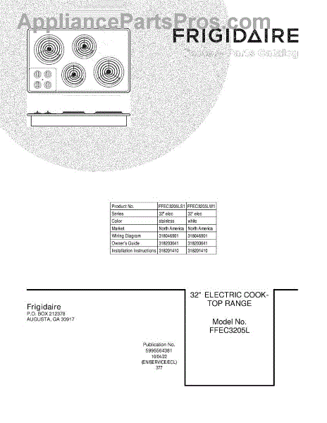 Parts for Frigidaire FFEC3205LS1: 01 - Cover Parts