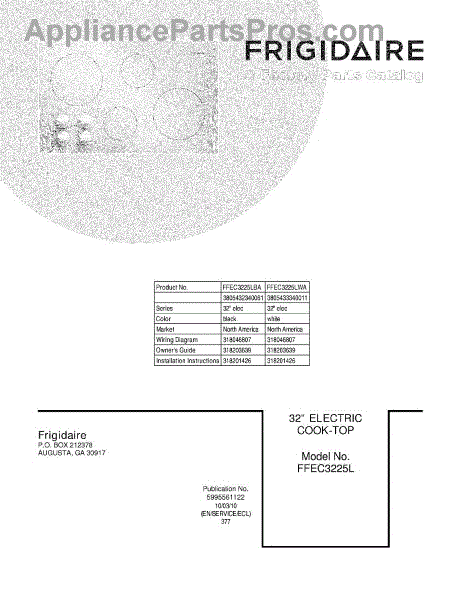 Parts for Frigidaire FFEC3225LWA: 01 - Cover Parts