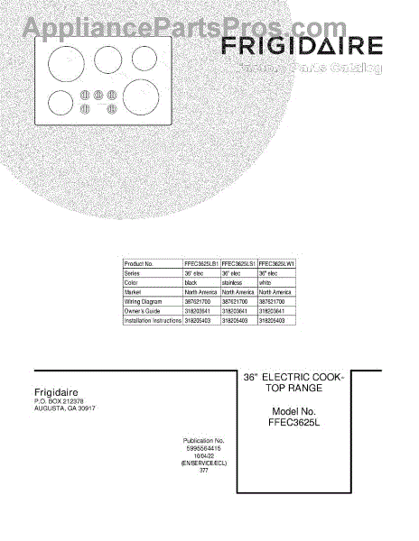 Parts for Frigidaire FFEC3625LB1: 01 - Cover Parts