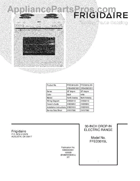 Parts for Frigidaire FFED3015LBA: 01 - Cover Parts