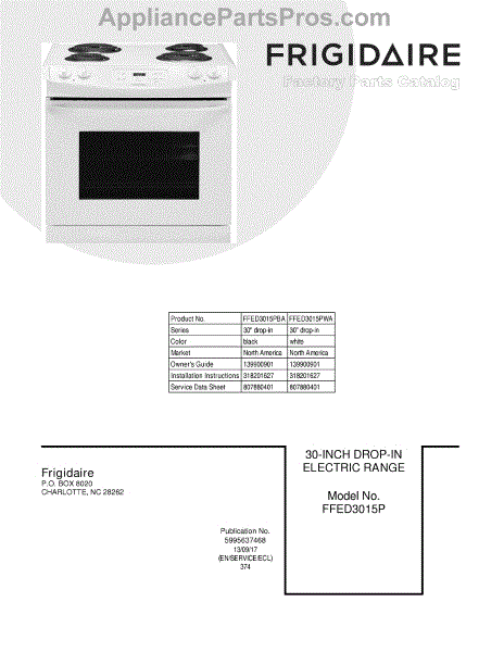 Parts for Frigidaire FFED3015PBA: 01 - Cover Parts