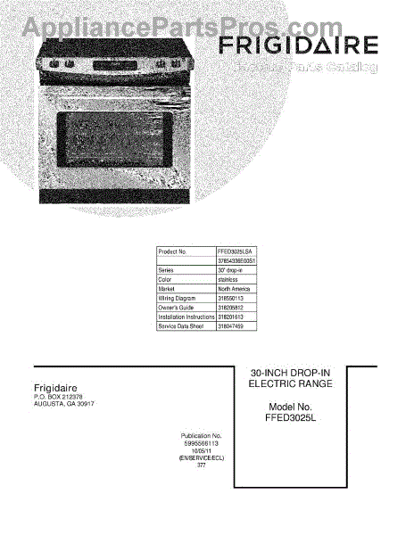 Parts for Frigidaire FFED3025LSA: 01 - Cover Parts