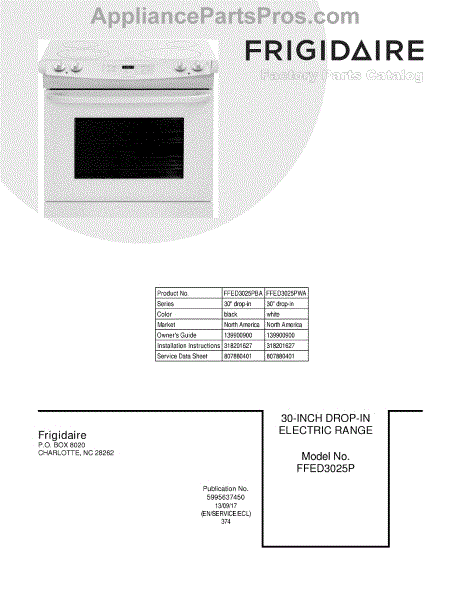 Parts for Frigidaire FFED3025PWA: 01 - Cover Parts