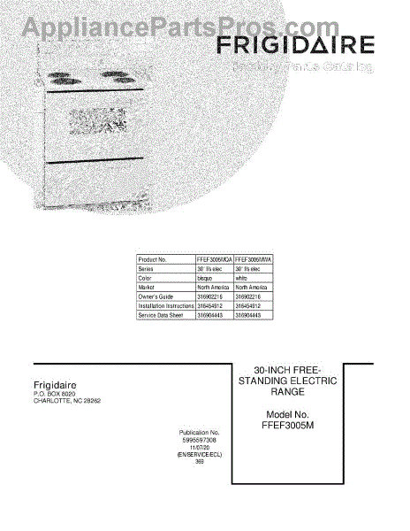 Parts for Frigidaire FFEF3005MWA: 01 - Cover Parts